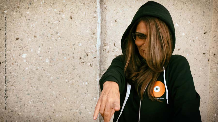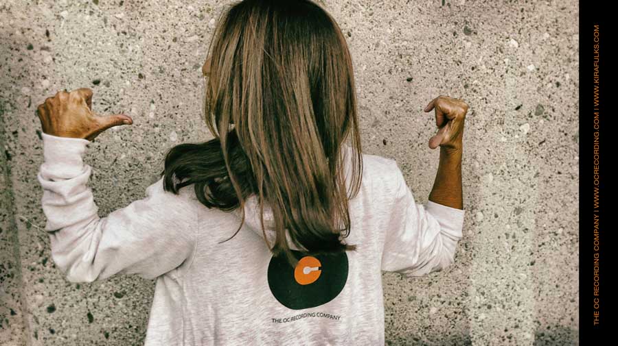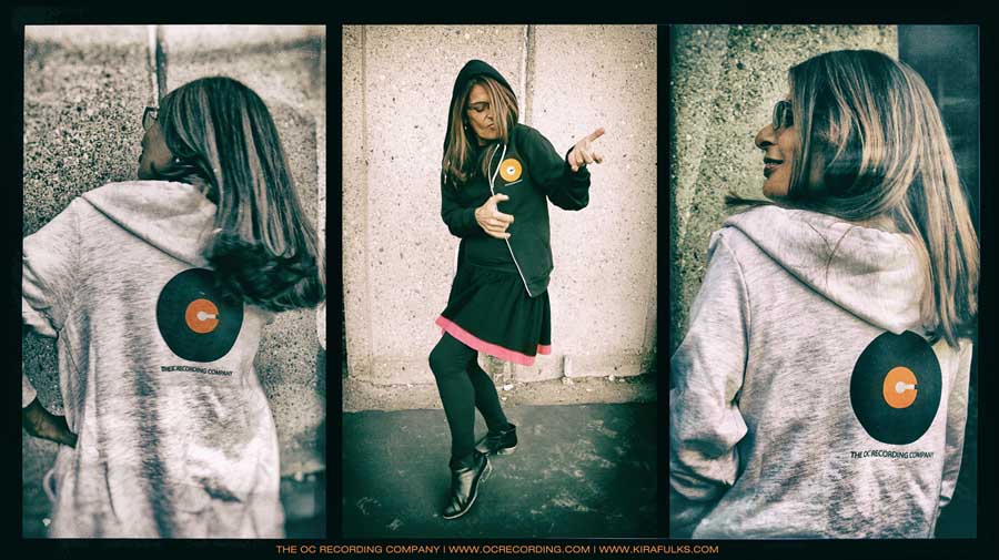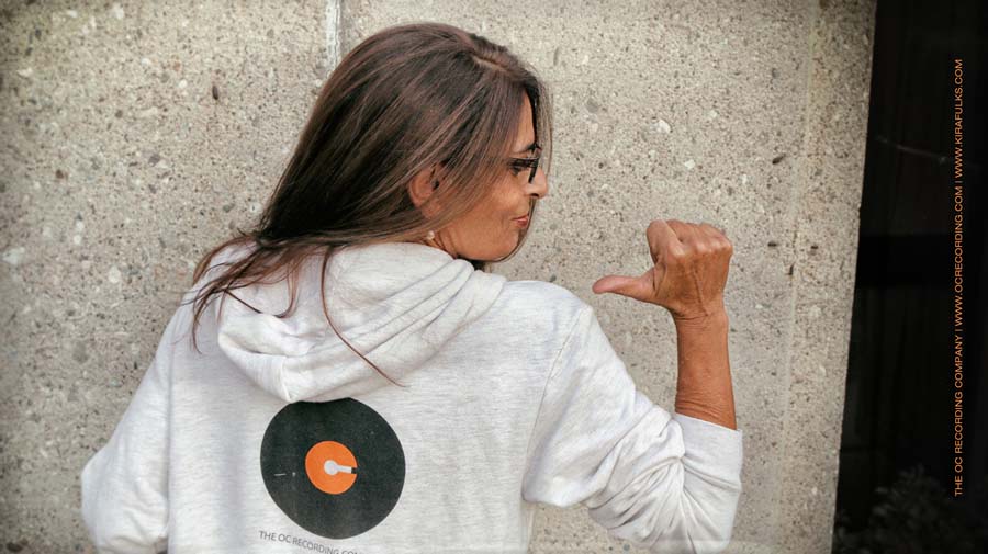 OC Recording Sweatshirt Hoodies made by American Apparel (Oatmeal and Black). Available in S, M, L, XL, XXL. Unisex. Model: Kira Fulks. $50 Each + S&H.